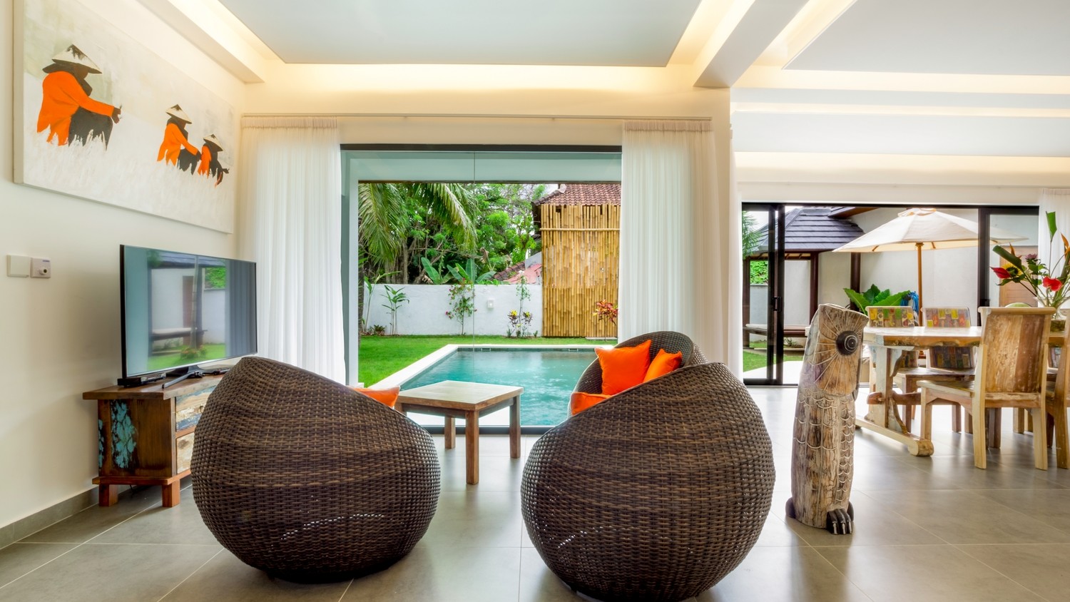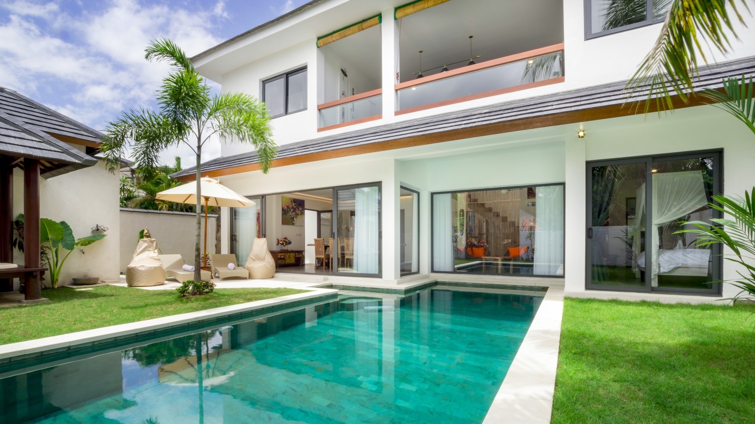 Steps away from Double Six beach in Seminyak, there is a beautiful, charming little holiday home with three bedrooms villa suites offering a sanctuary to couples, families, and groups of friends. You can head outdoors to explore the town with all of its beaches, clubs, and the famous Oberoi ‘eat street’, or stay indoors taking full advantage of your own private swimming pool and verdant tropical gardens for a peaceful time. There is even a media space at the villa that offers an entertaining corner to guests, where they can have movie nights and marathons with their loved ones!